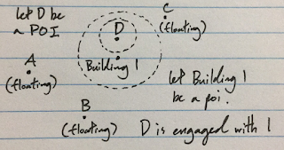 Either way, the details in interaction using the spatial scale are only applicable during action under tension with stakes on the line. Otherwise, treat a POI as would any other narrative element.